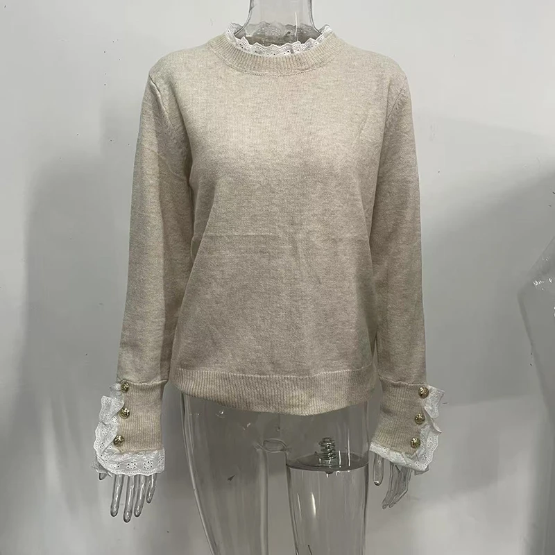 FEMININE LACE TRIM: The delicate lace detailing adds a romantic, elegant touch that sets this sweater apart from ordinary knits, offering a perfect balance of cozy and chic.