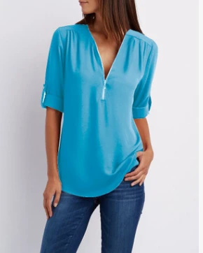 It's an elegant shirt for lady, the color of pink, deep blue, blue, sky blue, navy blue, army green, blackish green, rose red, brick red black grey, violet. Make every lady cooler.